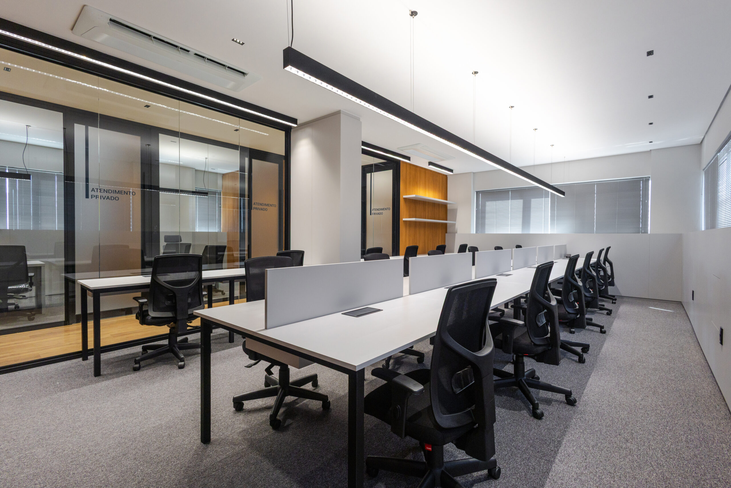 A Solwens executou a reforma do escritório XP – Graham, em Chapecó/SC, com 132,20 m² de área. A obra foi concluída em apenas 28 dias, demonstrando eficiência, organização e alto padrão de execução. O projeto resultou em um ambiente corporativo moderno, funcional e sofisticado, refletindo a identidade da marca e oferecendo mais conforto e produtividade à equipe.